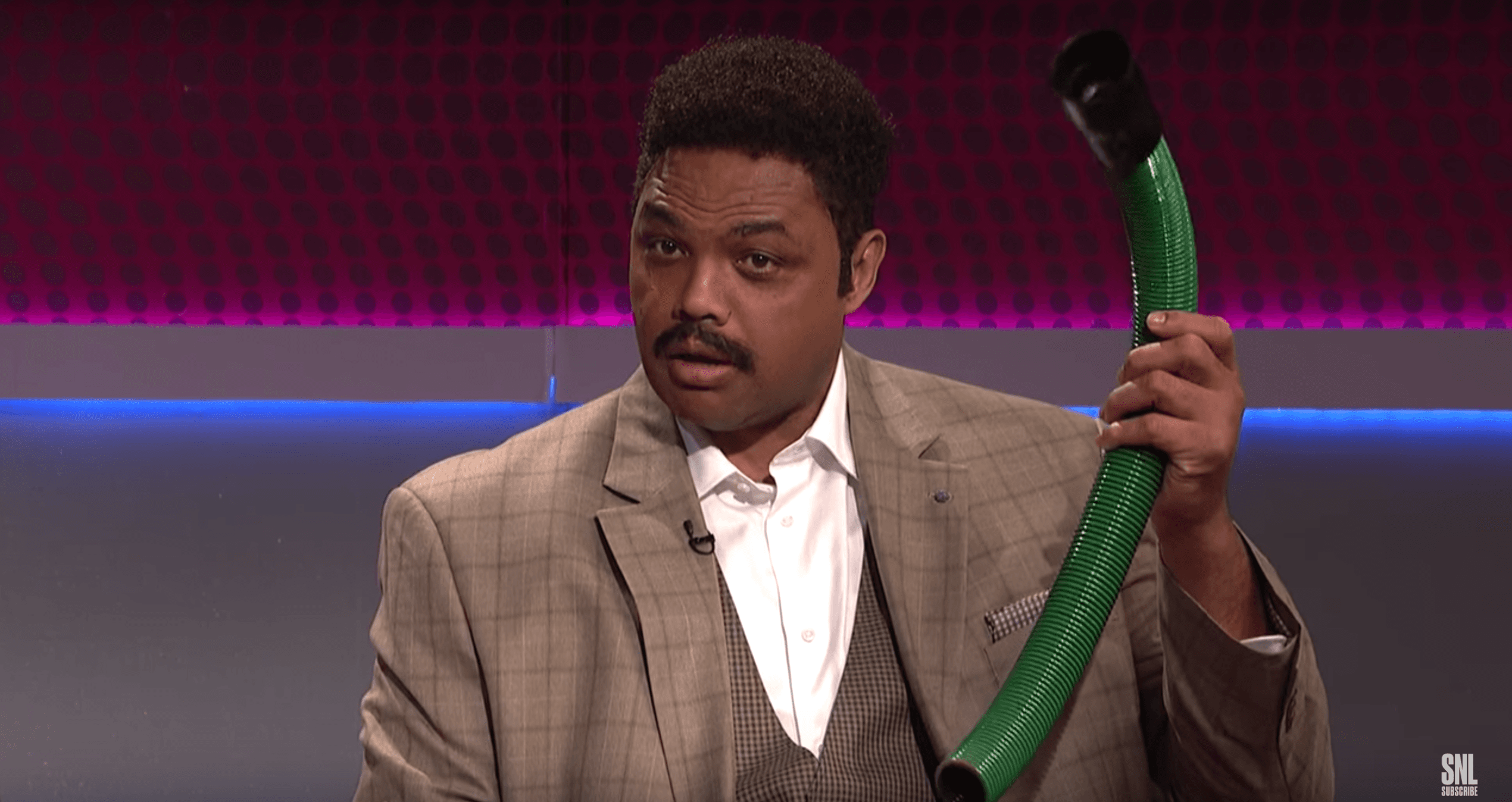 He can acquit himself when the skits are pre-recorded, too, although stumbling over lines is still inescapable. Barkley plays Ned in an infomercial for Ned’s Roach Away (note the acronym), a deterrent that puts AR-15s in the hands of “God-fearing” roaches, because the only thing that can stop a bad roach “is a good roach with a gun.” The premise is too out there to be the flaying that the NRA truly deserves this week, but Barkley’s clumsy delivery is perfect for it—see “none of my roaches are gay” read as though Barkley somehow saw the cue card, forgot it, and remembered it all in the span of a half-second.