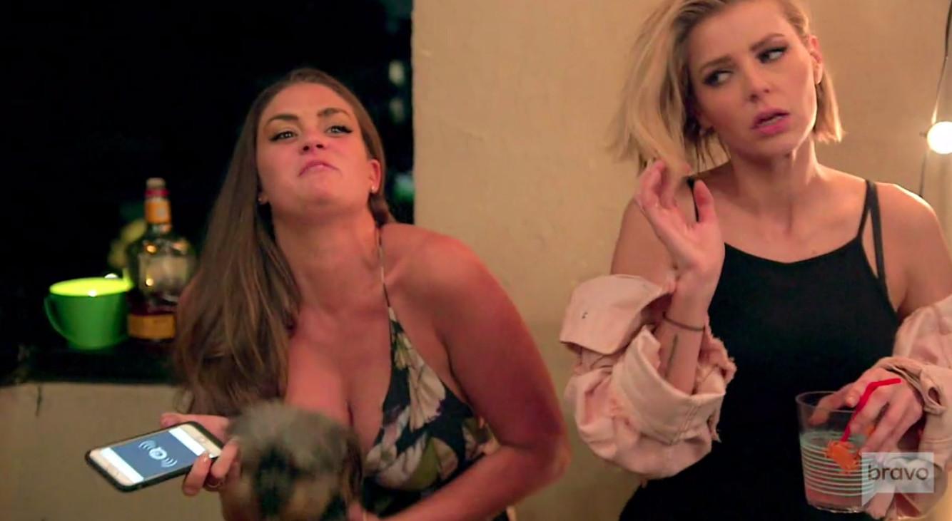 Returning to the current season, as if things could not get worse for her, Brittany learns that Faith secretly recorded a post-coital chat with Jax (ew). Lala, a SUR host, and Ariana, a bartender, bring this to Brittany’s attention, and the three huddle around Lala’s phone (Lala got it from James, who says he got it from Faith; he reportedly stole it from her, though).