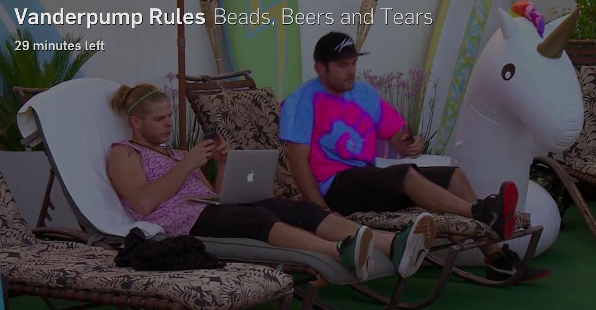 Their cavalier attitudes toward privacy extend to their devices in general. In Season 1, Stassi totes her laptop to the rooftop pool in what is one of the few instances in the entire series where someone uses a laptop for something other than DJing. (Occasionally Schwartz has a laptop open next to him on the couch; it’s not a Mac, either. Did he get a Dell?)