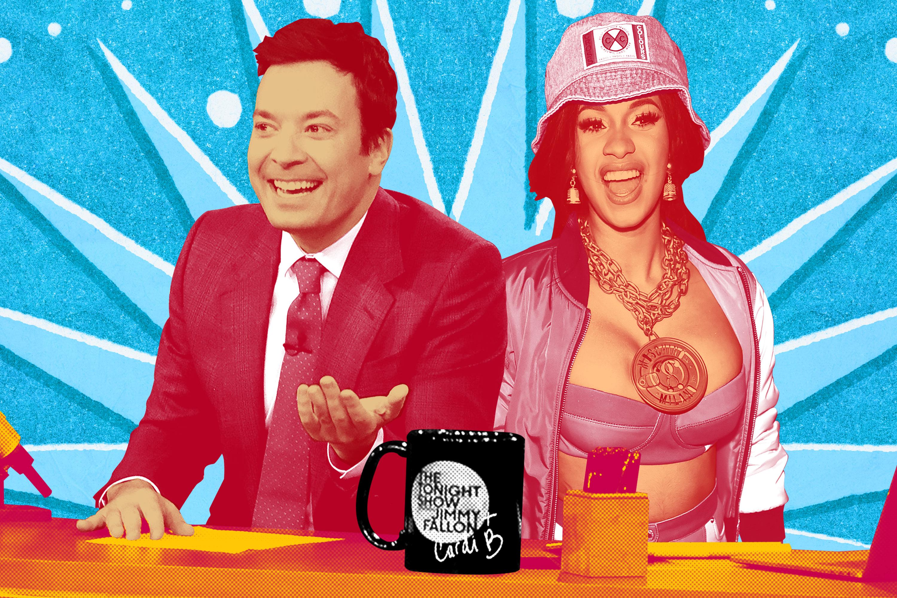 The idea was to expand on that goofy viral moment, which is to say belabor it, which is to say slightly sour it. “Backstage, Cardi was doing some breathing exercises, and it sounded like the bird section of a PetSmart,” Fallon cracked in the monologue, and Cardi dutifully cooed and purred and whatnot. She’s far too shrewd and charismatic to let him exoticize her, but it was still not quiet comfortable watching later as she was made to clarify what, exactly, “EEEEOOOWWW!” means. (She began her explanation by describing it as “like a sad cat sound—like a cat that’s going through pain.”)