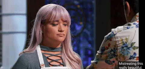 And I have additional beefs (heh) here! First of all, burgers are not street food—sliders, maybe, but burgers, no way. Secondly, the point of the challenge was to force the contestants to serve a tricky dish, and I’m sorry, but a burger is not that hard to make, no matter how many times Ramsay says the phrase “intricacy of a beef patty.” I can barely boil and cook my own pasta, but throw me on MasterChef and I could make an edible burger.