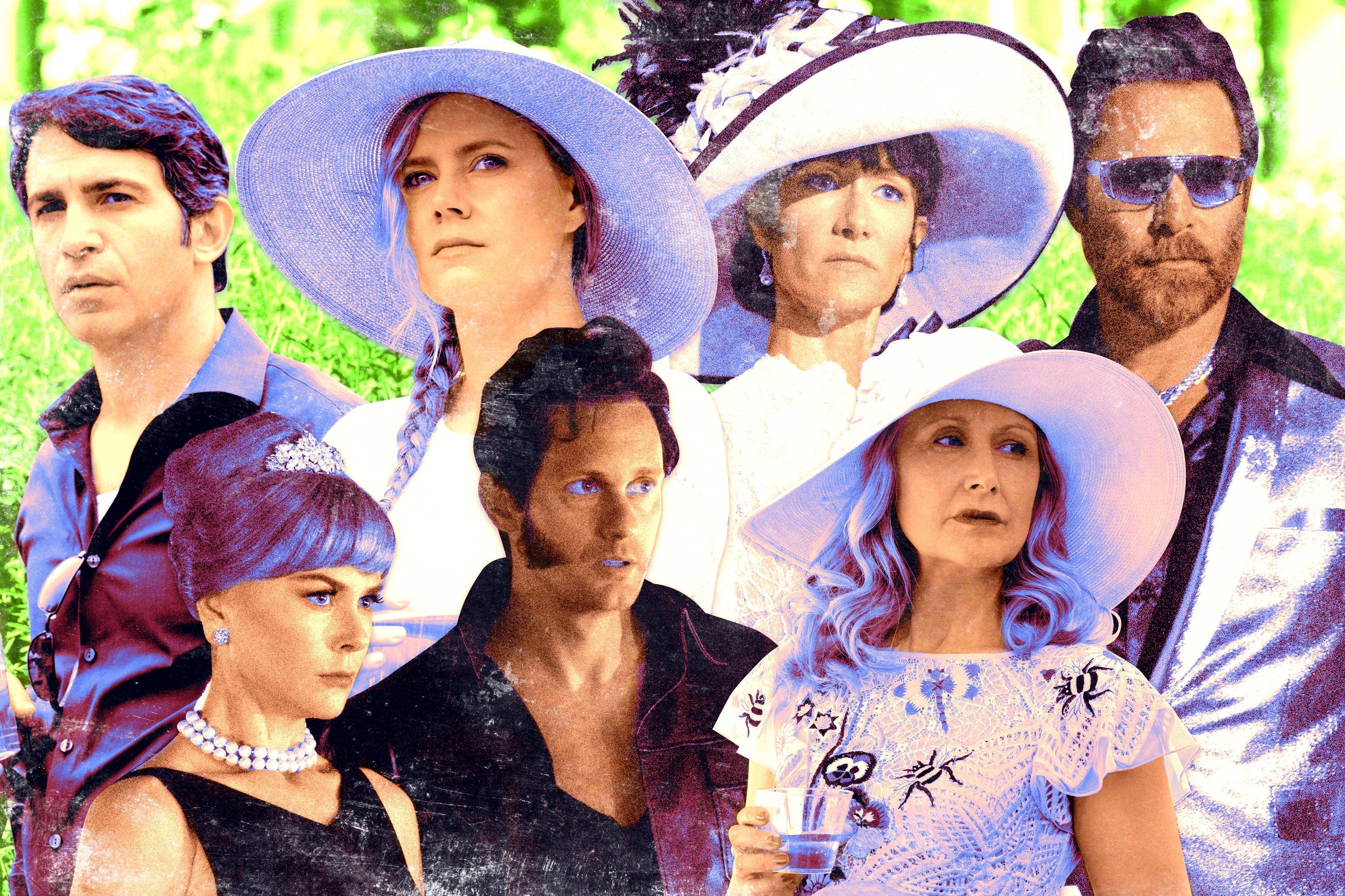 What both party scenes provide is an opportunity to throw all the characters into one place and see how they interact with and irritate one another. In both shows, Vallée provides myriad perspectives from these scenes by cutting between the eyelines of several characters, rather than homing in on a specific protagonist. In Big Little Lies, the camera takes turns following members of the quintet at its center—Kidman’s Celeste, Reese Witherspoon’s Madeline, Shailene Woodley’s Jane, Zoë Kravitz’s Bonnie, and Dern’s Renata—at different points in the evening, building up to their vicious showdown with Perry. In the fifth episode of Sharp Objects, “Closer,” we mostly follow Amy Adams’s Camille, Patricia Clarkson’s Adora, and Chris Messina’s Detective Willis as Adora hosts the town’s annual Calhoun Day: a celebration of Zeke Calhoun, whom Camille bluntly describes as the fictional Wind Gap, Missouri’s “founding pedophile.”