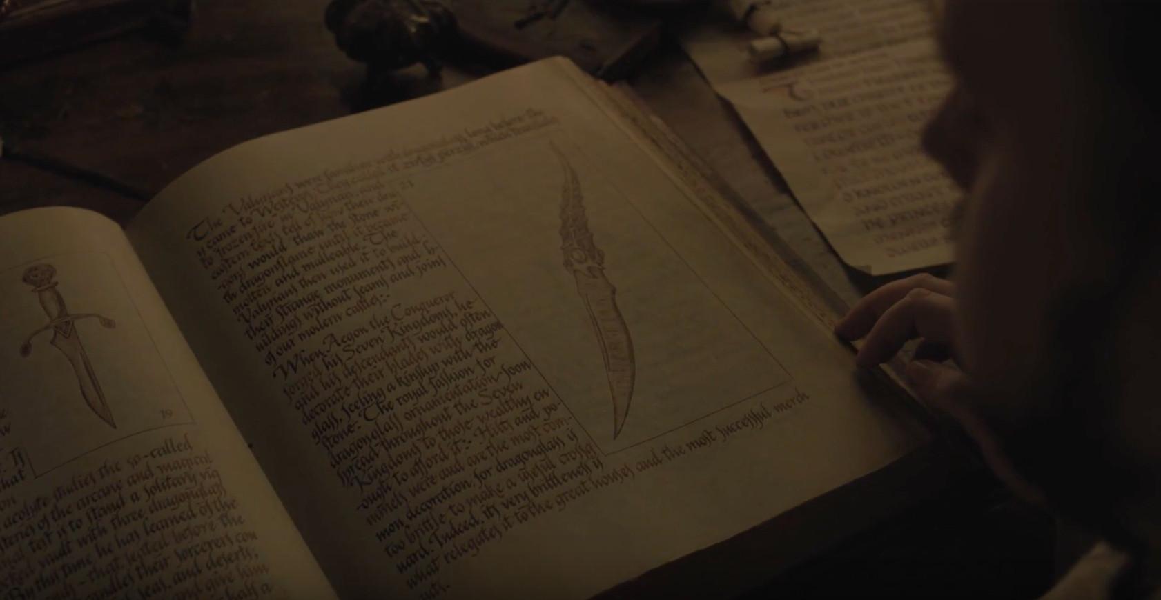 If anyone can figure out the secrets to not only reworking Valyrian steel but crafting new Valyrian steel, it’s Sam Tarly and his living Wikipedia, Bran Stark. Sam has already been researching how to kill White Walkers, and in Episode 1 of Season 7 he found the importance of dragonglass—and the stockpile of it on Dragonstone—when he was flipping through a book that also contained a drawing of Arya’s Valyrian steel dagger:
