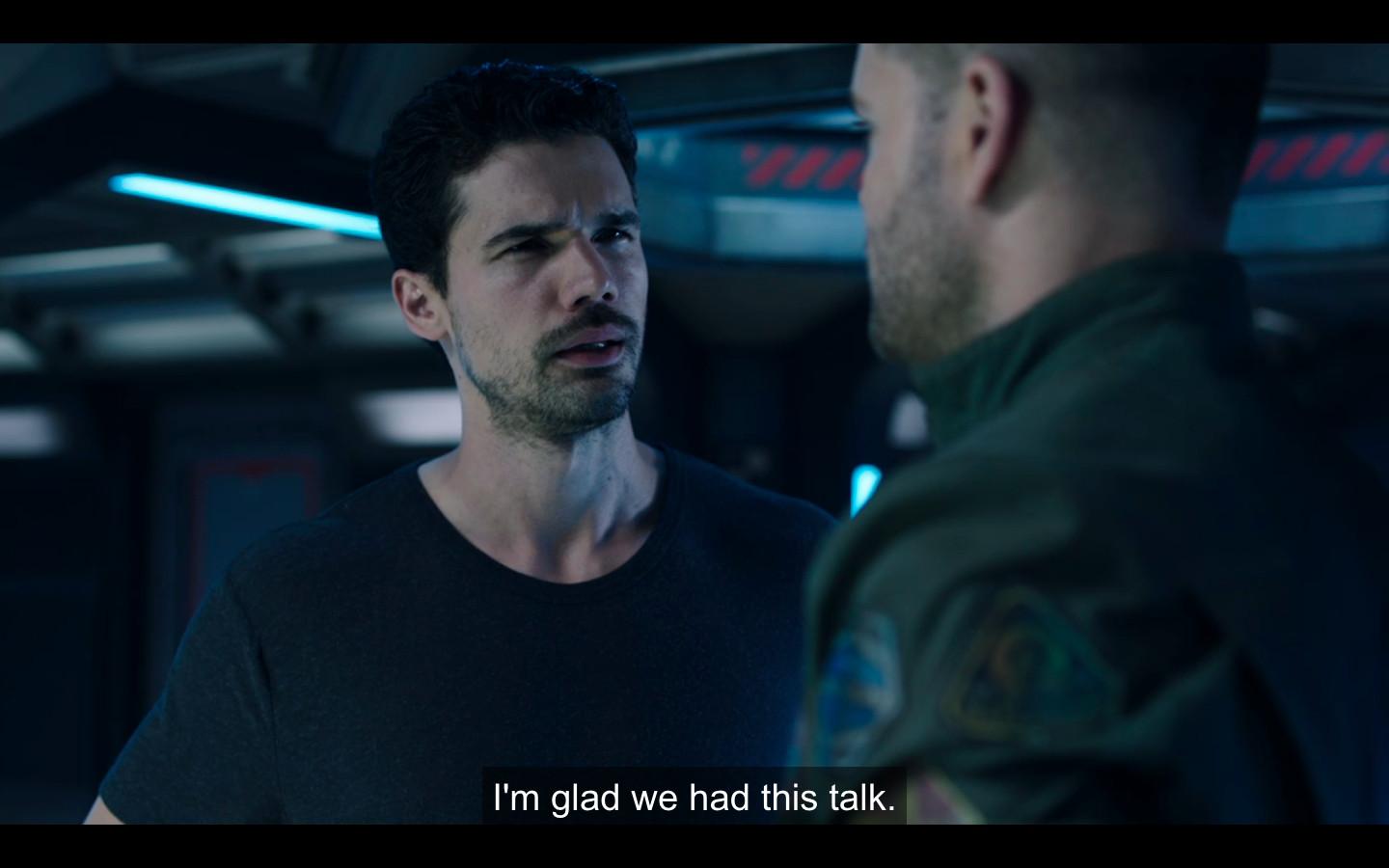 There’s that look again. As The Expanse has deepened and widened, Amos has gotten his philosophical moments, his little speeches, from “Everyone leaves unfinished business—that’s what dying is” to “The way I see it, there’s only three kinds of people in this world: bad ones, ones you follow, and ones you need to protect.” That Chatham can dole out these nuggets of wisdom while holding a machine gun is extra impressive. But he was born to Kick Ass and Be Problematic. If this were the sort of show that inspired lots of hand-wringing think pieces, the dramatic conclusion of the Amos-Wei romance would inspire a whole bunch of them: It’s ugly and squirmy and also, as always, furiously logical and moral, according to his uncomfortably vivid and distinct brand of morality. Here is our last look at Amos in Season 4.