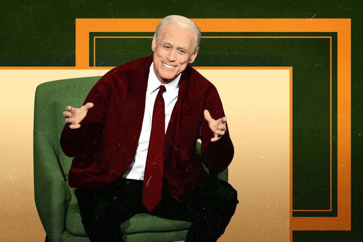 Take this past Saturday’s interminable sketch on Donald Trump’s and Joe Biden’s dueling town halls, the announced premise being that Biden’s is a blanket-and-warm-milk “Hallmark movie” whereas Trump’s is an unhinged “alien autopsy” that devolves into hand-to-hand combat. But Carrey can’t channel serenity even when he’s explicitly trying to channel serenity. He kicks off with yet more finger guns, and storms offstage (“Hey, is that Bobby Clarke of the 1974-75 Flyers?”) to get right back in the camera’s face, and breaks into a quick jerky dance “for the kids on TikTok.” Even when he slips on a Mr. Rogers sweater to emphasize how soporific he’s supposed to be, it rubs up viciously against his mic, a blaring alarm bell for the anarchy seeping out of his every pore.