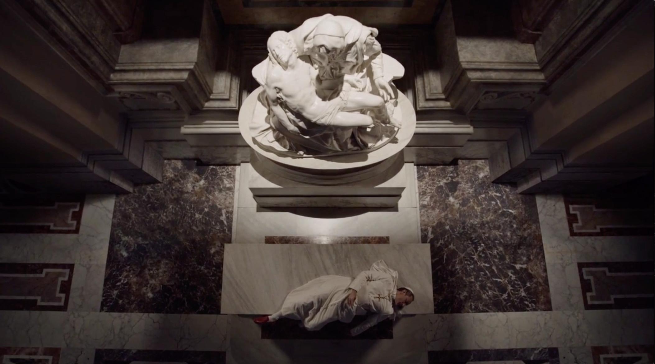 It’s also left ambiguous as to whether Pius XIII’s address and crowd-surfing death even happened. Let’s not forget, St. Peter’s Basilica was bombed by the Pius XIII cultists, an attack that we know damaged La Pieta. The statue looked pristine when the nuns placed the pope’s body there, an indication this could’ve been some type of dream sequence, similar to the surreal sight of Pius XIII emerging from a beach in a Speedo. For me, it doesn’t really matter if the moment was “real” or not; it’s about what Pius XIII represented to the faithful, and to viewers of the series.