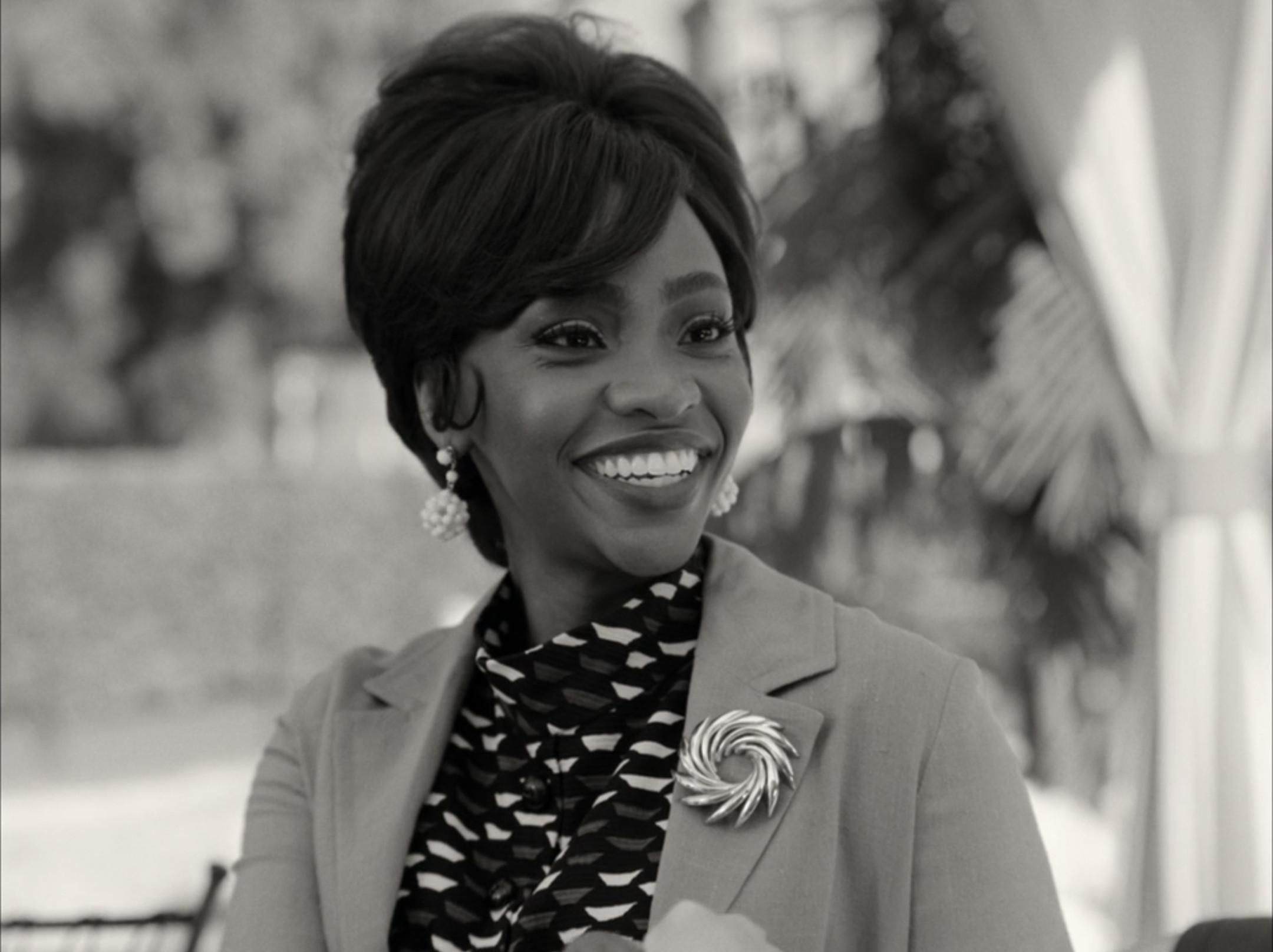 One of the characters introduced in the second episode is a member of the planning committee who goes by the name of Geraldine (played by Teyonah Parris), but even she seems to be unsure of who she really is. Just as Dottie breaks character when the man on the radio attempts to make contact with Wanda, Geraldine hesitates for a moment when Wanda introduces herself.