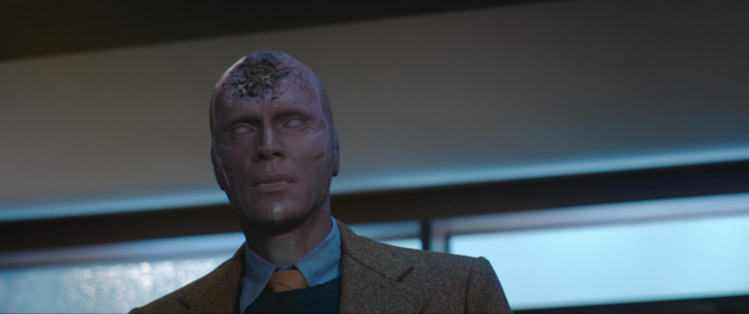Though we witnessed Monica flying through the air at the end of the third episode and could easily conclude that Wanda was the culprit, this week we get to see that scene in full. “You’re not my neighbor, and you’re definitely not my friend,” Wanda menacingly says to Geraldine, while she begins to twirl her glowing red hands. “You are a stranger and an outsider. And right now, you are trespassing here. And I want you to leave.” Wanda then unleashes her powers on Geraldine, sending Monica through the side of her house (as well as the neighbor’s) before she eventually lands outside of Westview. Vision storms into their home, just as he did last episode, except this time, when Wanda turns around to look at him, the synthezoid isn’t looking so good: