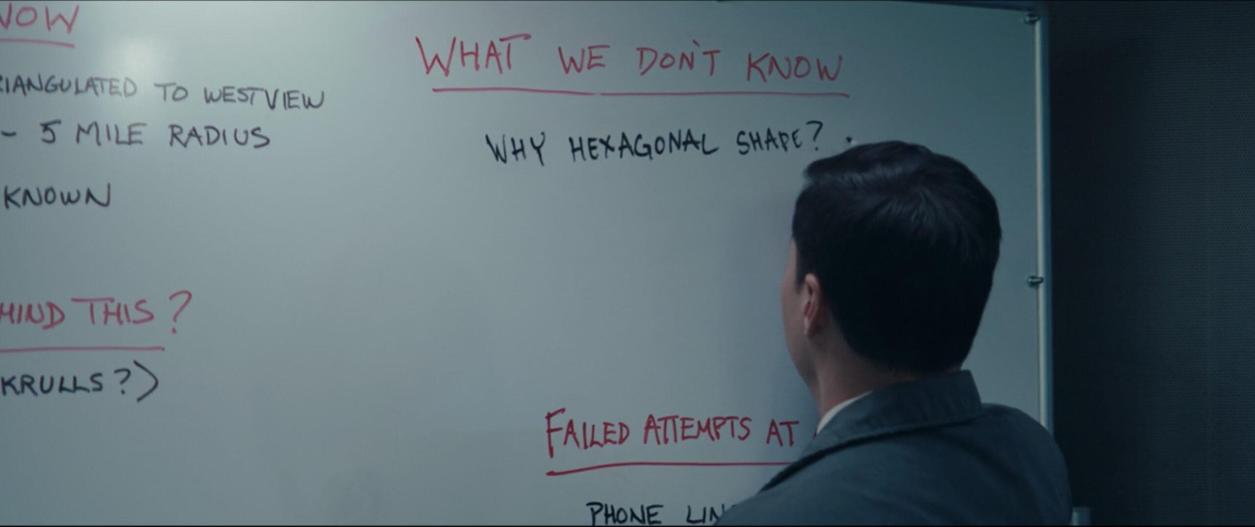 But as we know from previous episodes, the boring assignment meant to ease her back to the workforce is anything but. Monica meets Agent Woo outside the town of Westview, which . . . apparently doesn’t even exist, according to some police officers from Eastview. Monica sends in a small helicopter drone, but once it reaches the town line, it vanishes into thin air. As Monica approaches it, she sees that there’s an energy field surrounding the town:
