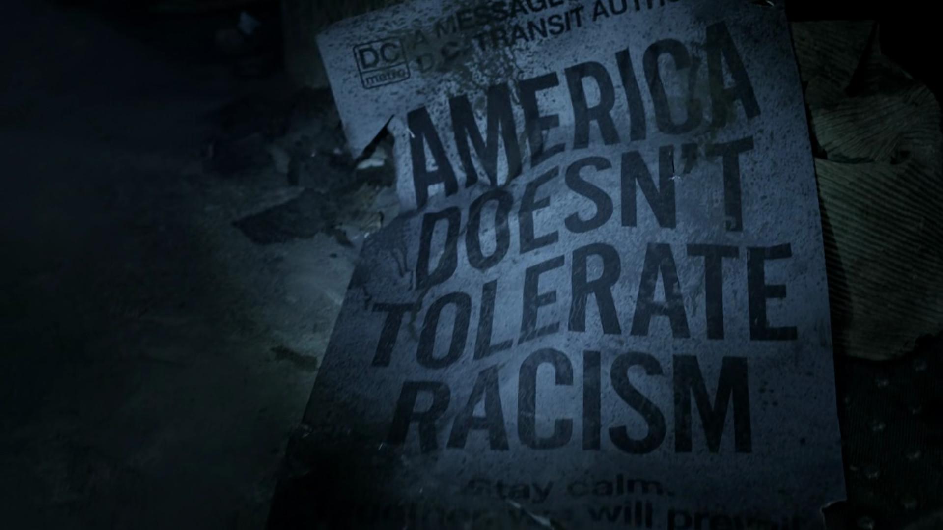 In “Acheron: Part I,” the premiere episode of the 11th and final season of The Walking Dead, a group of survivors on an expedition from Alexandria, Virginia, seek shelter during a dark and stormy night by descending into a Washington Metro station. You can guess how that goes: It’s a zombie show, so enclosed spaces such as pitch-black, subterranean tunnels tend to make for frightening commutes. As chilling as the undead fare evaders that lurk below, though, is a nod to more human horrors, in the form of a flyer from the D.C. Transit Authority that the camera captures lying on the subway platform. “AMERICA DOESN’T TOLERATE RACISM,” the stained and tattered message says. “Stay calm. Together we will prevail.”