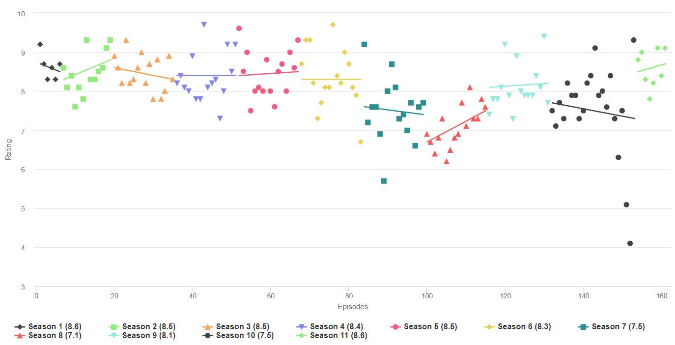 Gimple, who now serves as the franchise’s chief content officer, presided over the series’ double down on diversity, and Kang has helped restore the storytelling after the doldrums of Seasons 7 and 8. Aside from a few smaller-scale, mid-pandemic episodes tacked on to Season 10, the series’ IMDb user ratings have returned to roughly pre-Negan levels.