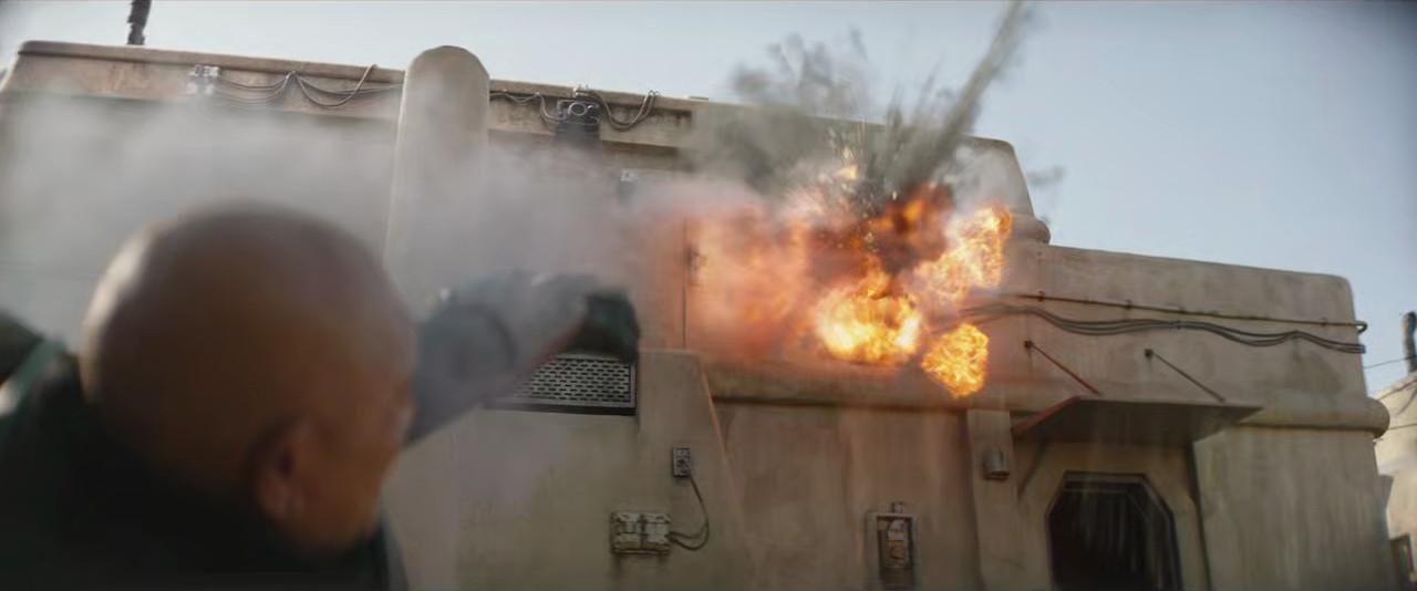 Not all of them, though. Mos Espa mayor Mok Shaiz not only fails to appear at the palace in person, but he sends his majordomo in his stead to collect tribute from Fett. (The majordomo is played by David Pasquesi—like Berry, the kind of comic actor The Mandalorian has used to good effect.) And as Fett and Shand exit the Sanctuary, they’re ambushed by several assassins with stun batons and energy shields, who surround the deadly duo. With an assist from the Gamorreans, Fett and Shand overpower the Power Rangers, and Boba wastes one with his wrist rocket—this week’s sole disintegration. After a parkour pursuit of two survivors, Fennec kills one and captures the other, though the eventual interrogation—and any info the prisoner spills about who hired him—will have to wait for next week. Perhaps the assassins were the “delegation” from the mayor that the majordomo told Fett to expect, though the mayor could be in league with another organization, such as Crimson Dawn or one of the other “five syndicates” from Solo.