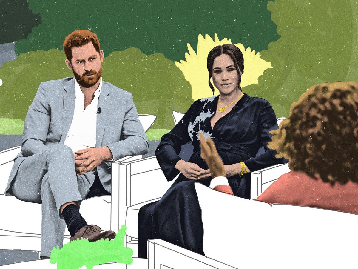 “After many months of reflection and internal discussions,” the couple wrote in an Instagram statement at the time, “we have chosen to make a transition this year in starting to carve out a progressive new role within this institution.” Instead, they’ve been moving further and further outside of it, both geographically and philosophically, settling near Santa Barbara and trading escalating barbs with the British royals in a highly public manner. Their every relationship—Harry’s with his stiff-upper-lipped older brother, the future King William; Meghan’s with her dissembling father—has been scrutinized relentlessly and globally; the couple has taken some of the more unscrupulous UK publications to court and won. Recently, when there was a sudden micro-surge in stories describing Meghan as a high-maintenance bully, there was a reason: an upcoming, old-school tell-all interview between the duke, the duchess, and Oprah Winfrey, a woman long considered (even by the British press!) to be television’s queen.