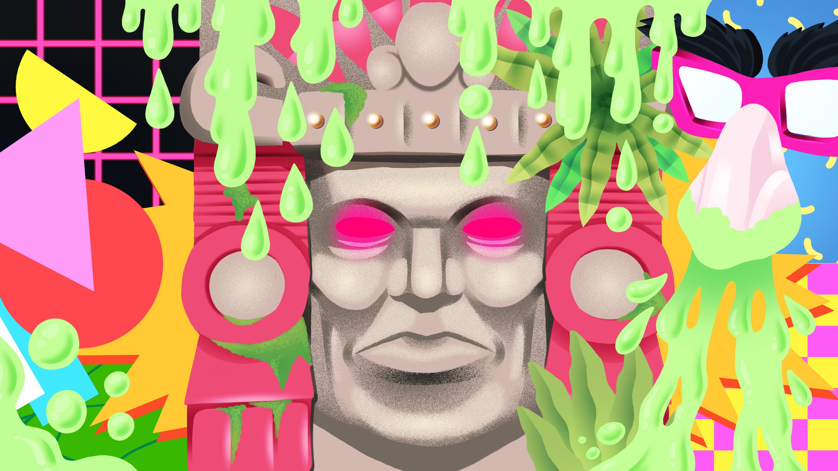 Throughout the late 1980s and 1990s, that same kind of colorful anarchy and wacky set design saturated the best of Nickelodeon’s live-action programming. Between the surrealist obstacle courses on Double Dare, the multitiered rock formations on Legends of the Hidden Temple, and the spontaneous slime on Figure It Out, Nickelodeon boasted a fantastical, eye-popping aesthetic that distinguished it from every other network. Despite initially small budgets and limited space, each show leaned into its interactive, tactile environment, epitomizing Nick’s commitment to kid-inspired entertainment and hooking a generation in the process. Identifying with Nickelodeon became so easy because kids could so easily identify a Nickelodeon show. “It felt like we wanted shows to really stand out from what had gone before,” says Scott Webb, Nickelodeon’s creative director from 1983 to 2000. “The more we could hear directly from kids about what they liked, the more directly we could connect with them.”