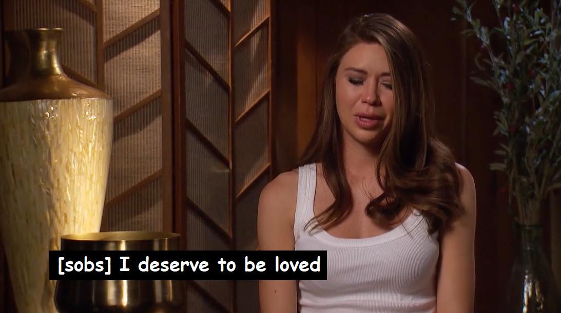 Perhaps because she’s lost all the sodium in her body this week already, Gabby actually takes this shower of hostility quite well. She’s definitely hurt by how Jacob and Hayden choose to express themselves, but she just wants the night to be over. These aren’t even guys she likes, and when she decides not to give out a group rose, she gives us another absolute doozy of a quote: “I’m here to find a lifelong partner, I’m not here to teach dudes how to act.”