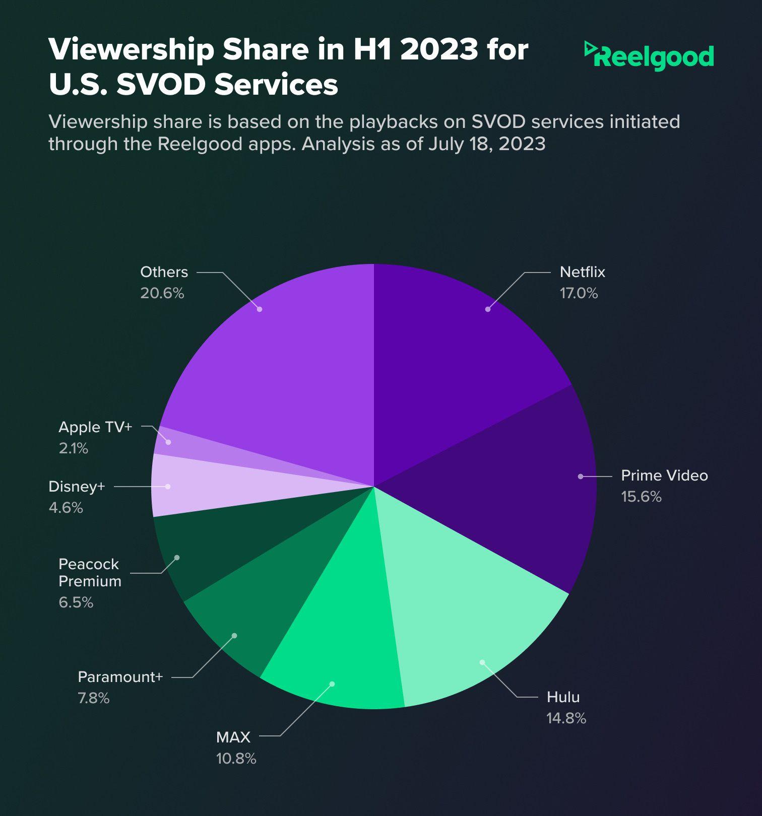 Reelgood gives Apple an even slimmer slice of the pie in its “viewership share” metric for the first half of the year, which is based on U.S. playbacks initiated through Reelgood apps.