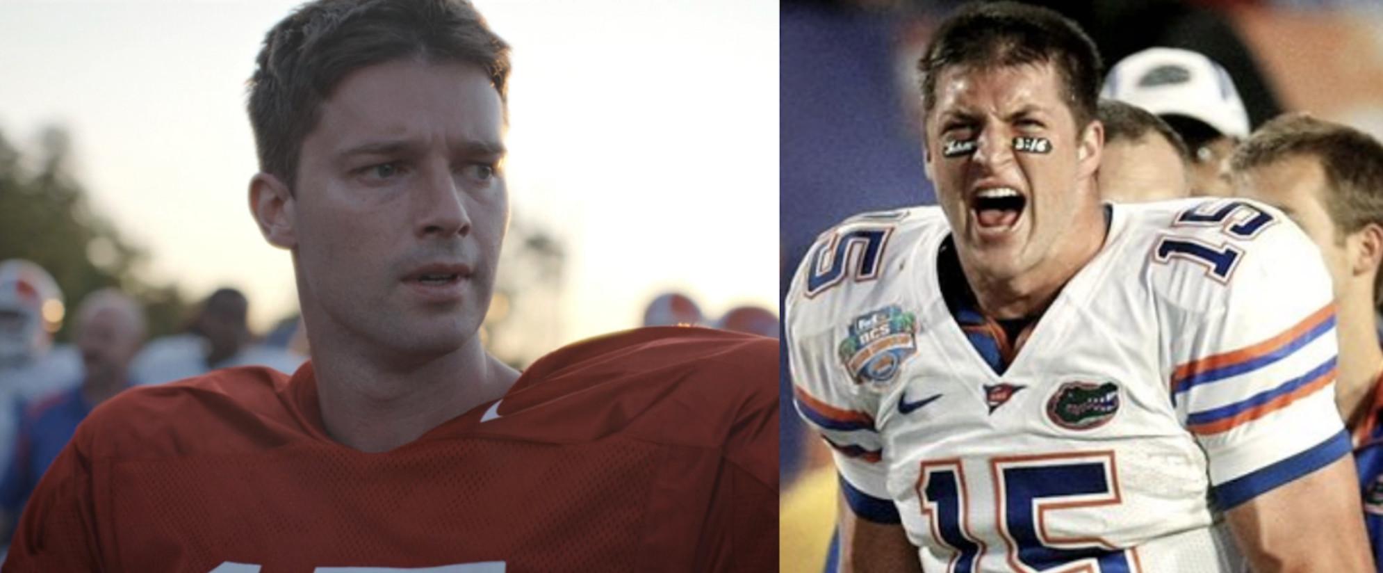 OK, I have a lot of thoughts here. My first gripe is with the casting. Patrick Schwarzenegger is simply not hot enough or jacked enough to play Florida-era college football God Tebow. I wouldn’t even like Schwarzenegger cast as BYU-era Taysom Hill! He just doesn’t have the aura. (Or is it rizz?)