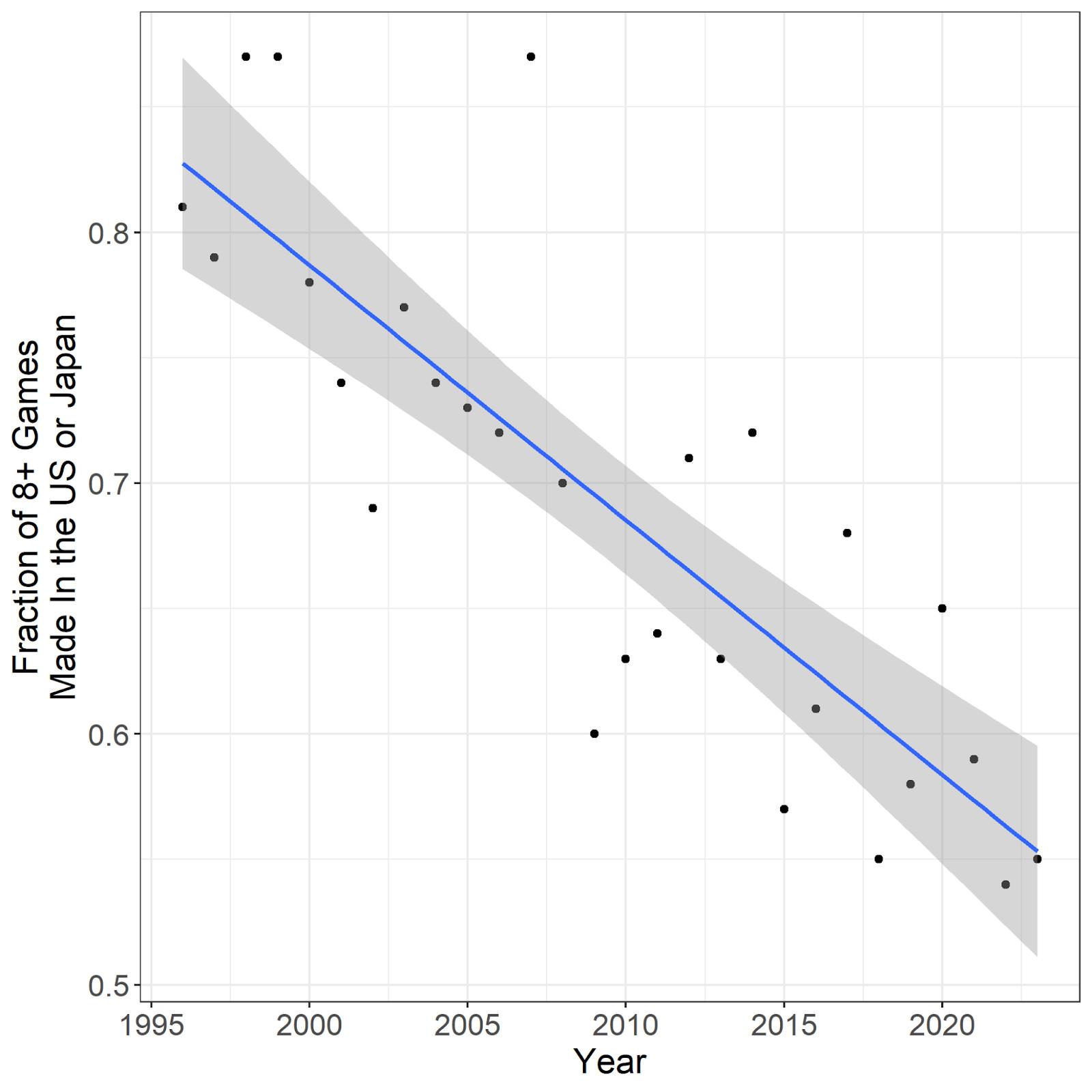This year also leads if our sample includes all games with 8-plus or 9-plus scores (not just the top 10, 25, or 50), even if we limit to non-remakes, non-remasters, and non-expansions:
