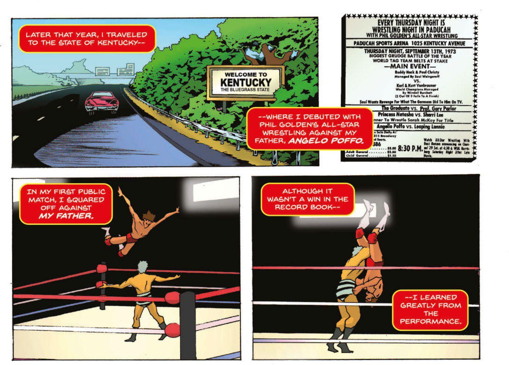 For the tight-knit Poffo clan, nothing mattered more than family. And Lanny, who was the spitting image of broad-shouldered, square-jawed Angelo, took the Poffo legacy seriously. Although Lanny played high school baseball alongside his brother and showed promise—a 1972 Chicago Tribune article quotes Angelo as saying that both Randy and Lanny wanted to be big-league catchers—only Randy pursued that dream in the St. Louis Cardinals and Cincinnati Reds farm systems. Lanny wrote in his comic-book autobiography that “I knew in my heart that professional baseball was not the path that I would follow”; he wanted to train at the feet of Angelo, who had a successful wrestling career in the 1950s and 1960s.